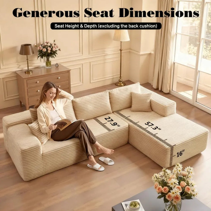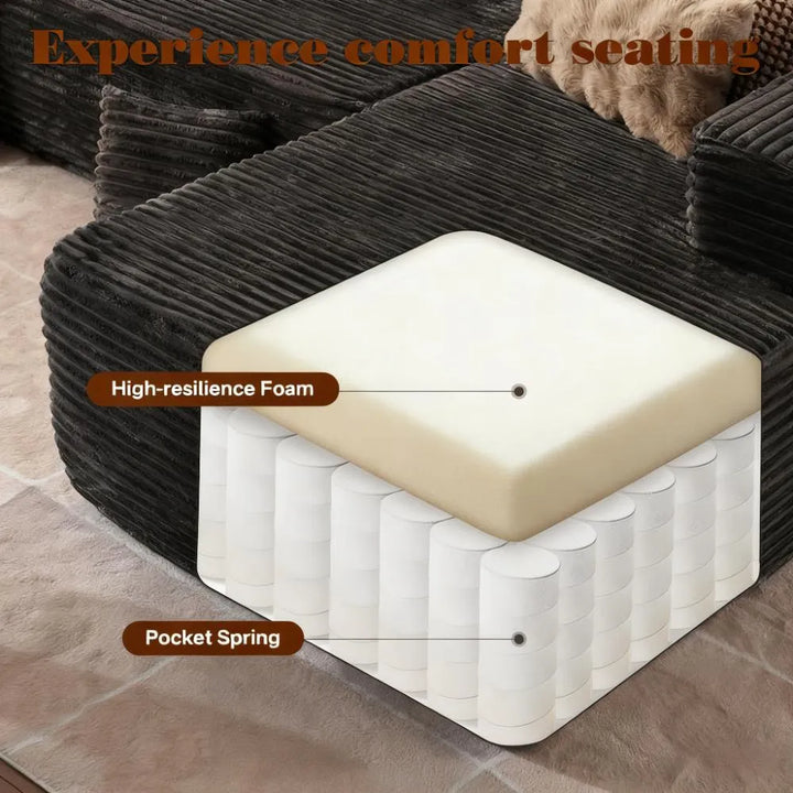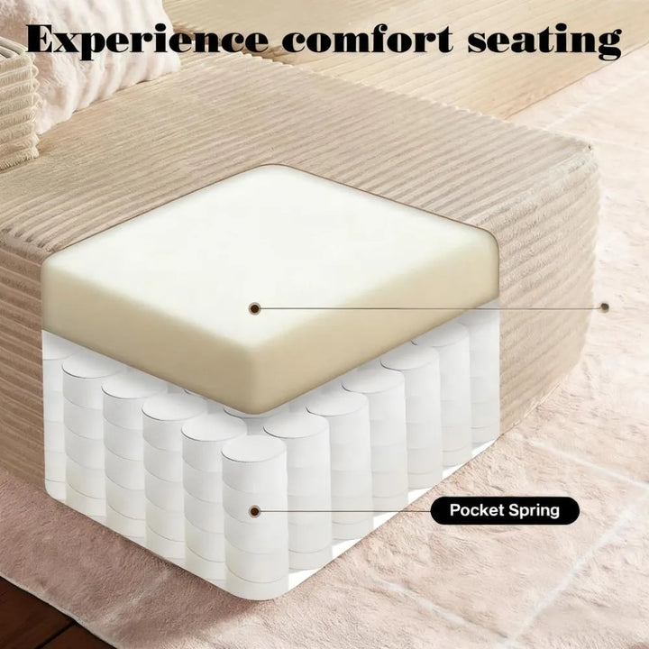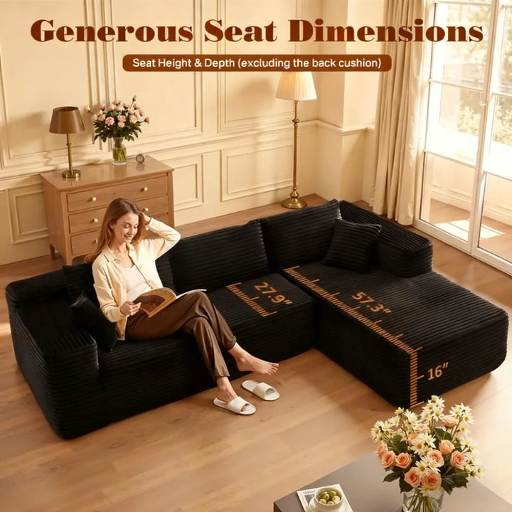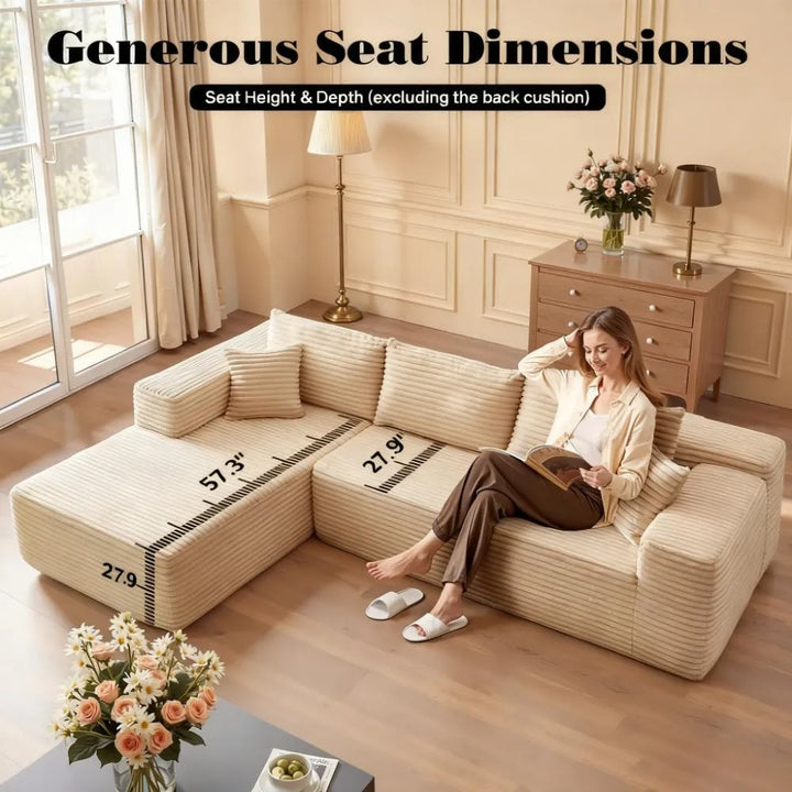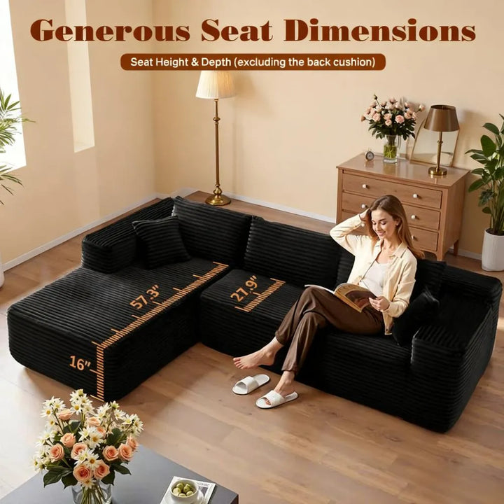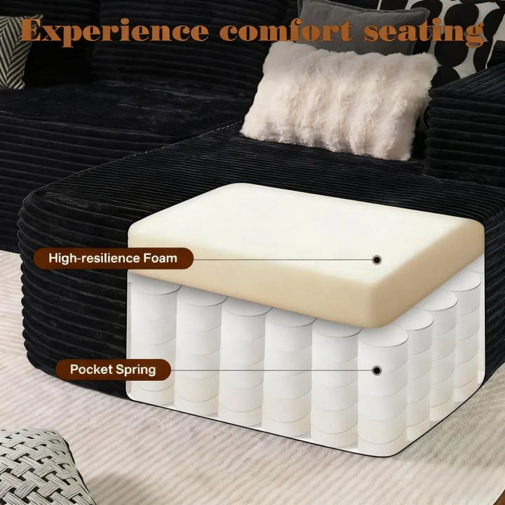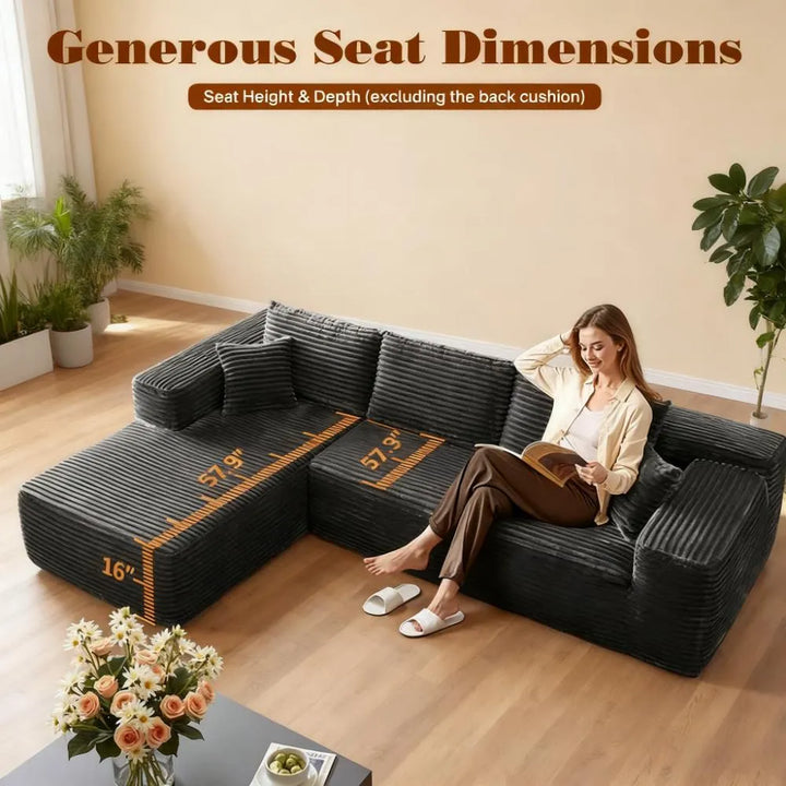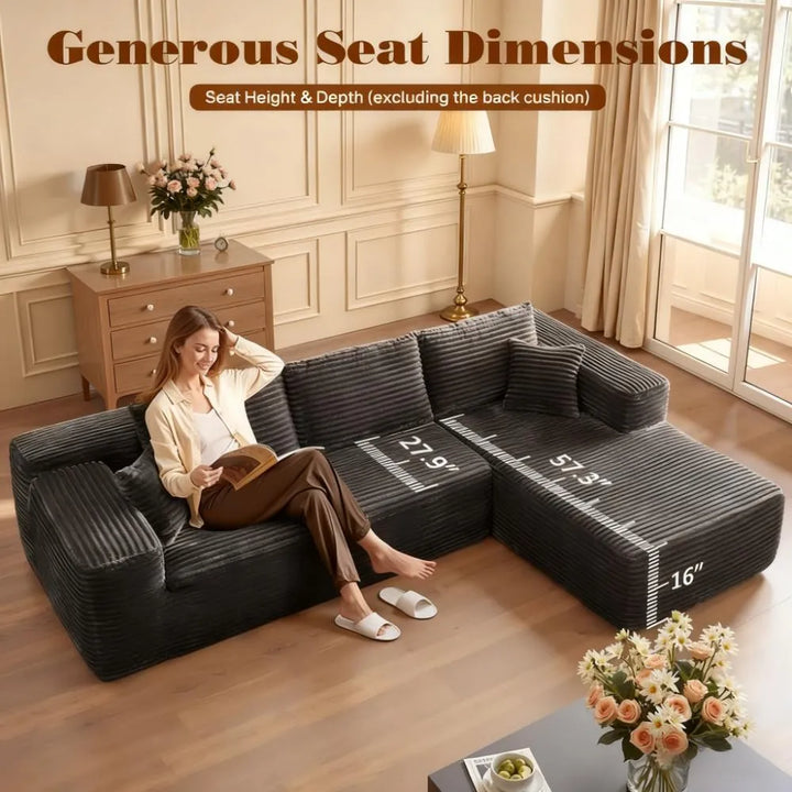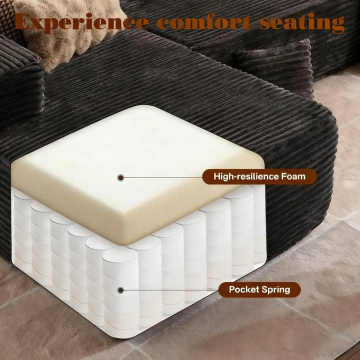 Extra-Large L-Shaped Configurable Sofa with Ottoman, Skin-Friendly Corduroy Material