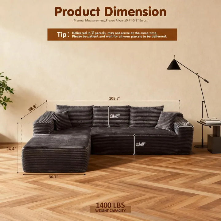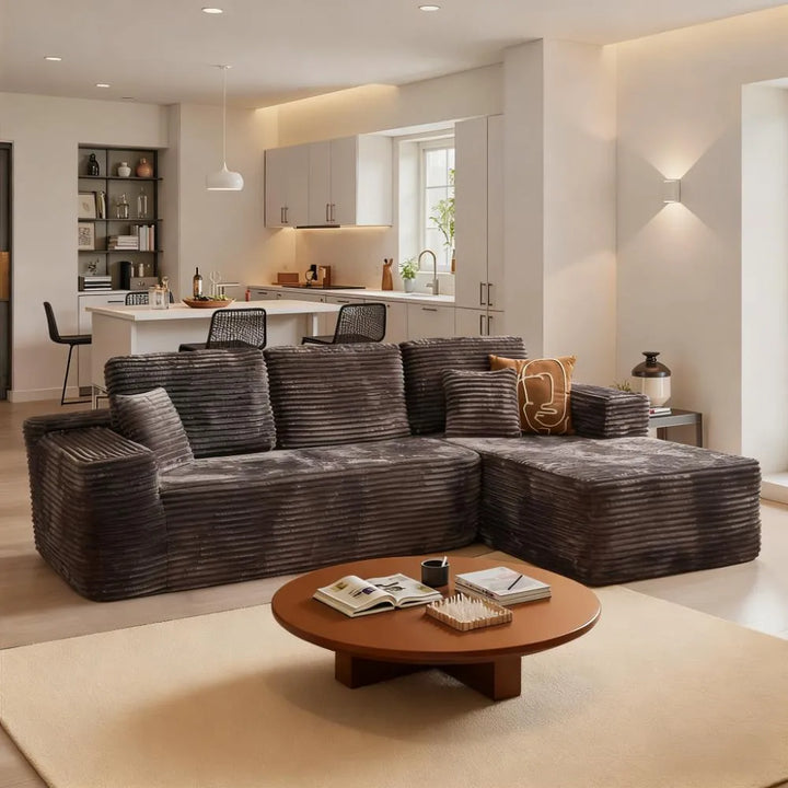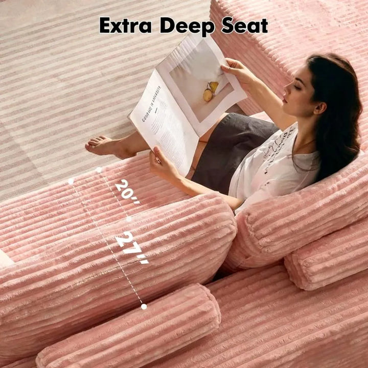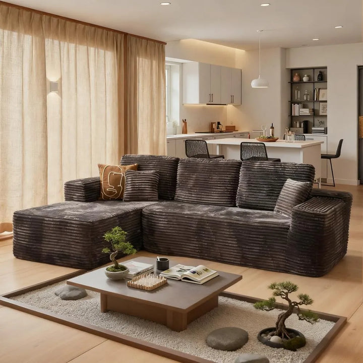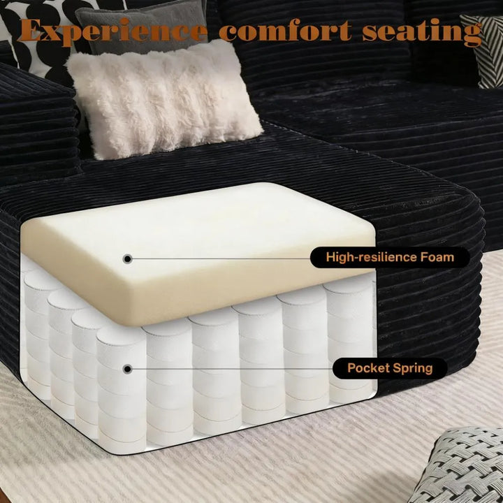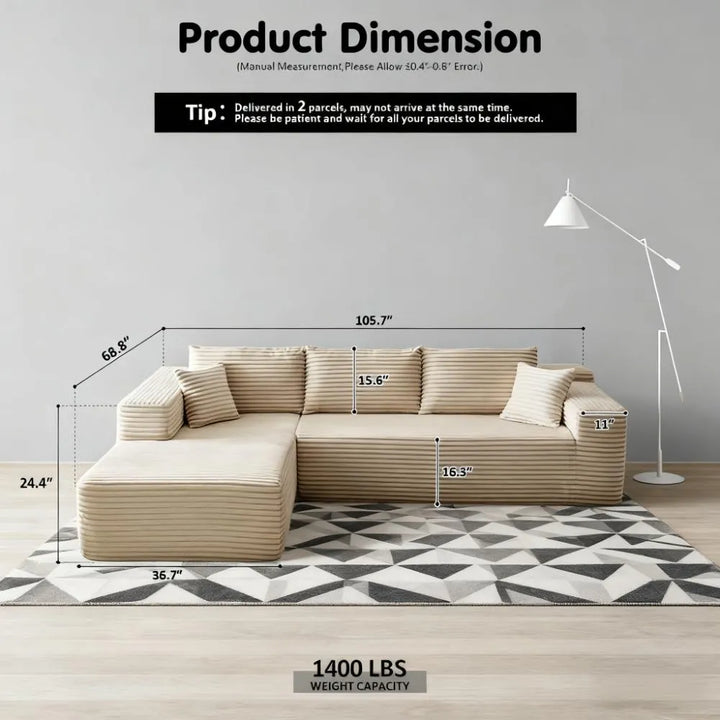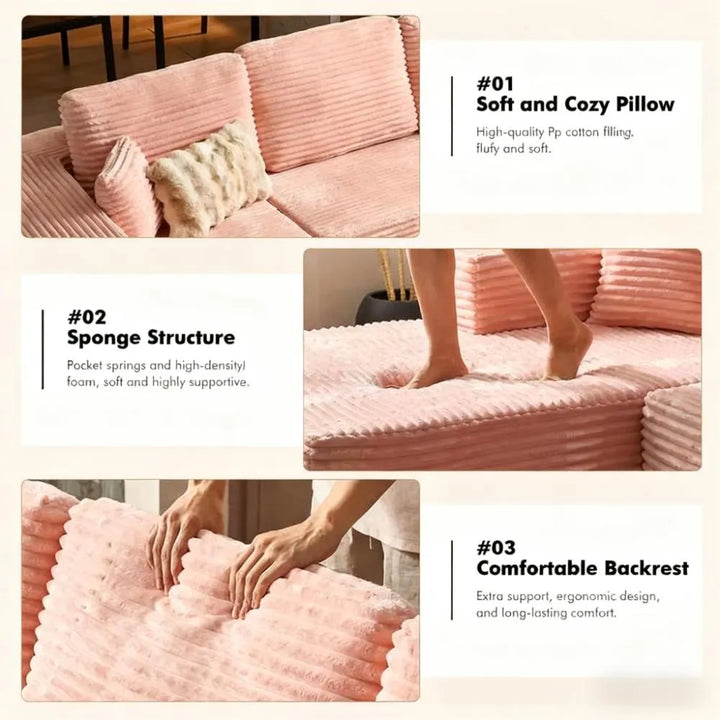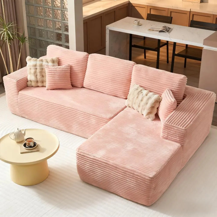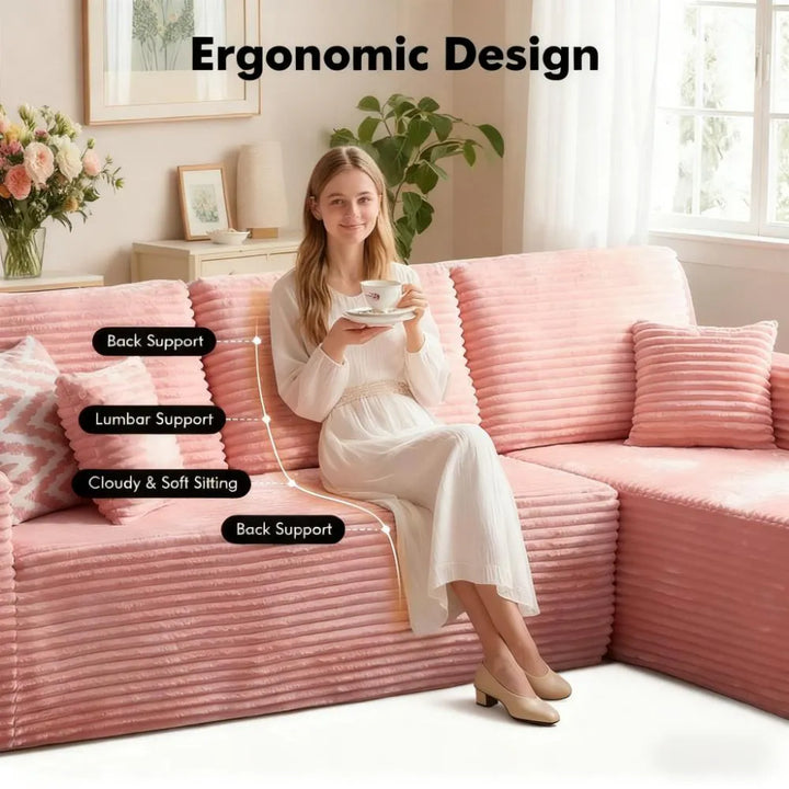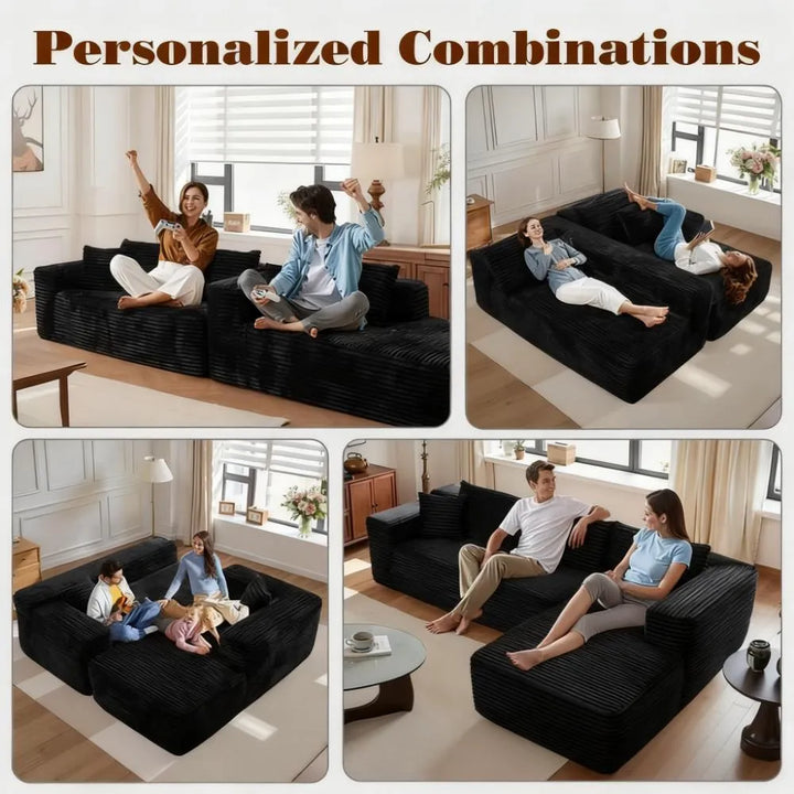 Extra-Large L-Shaped Configurable Sofa with Ottoman, Skin-Friendly Corduroy Material