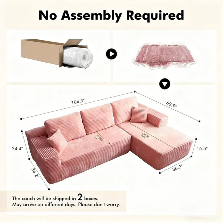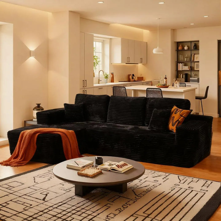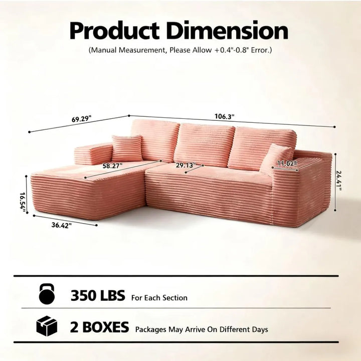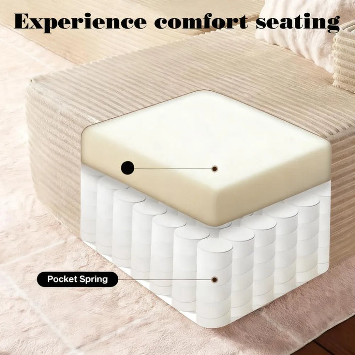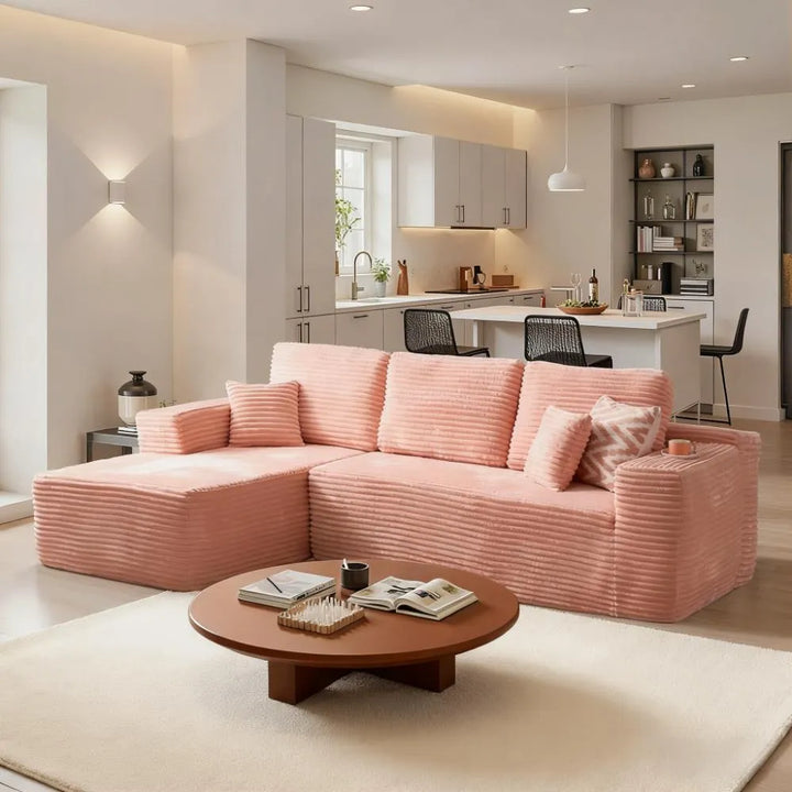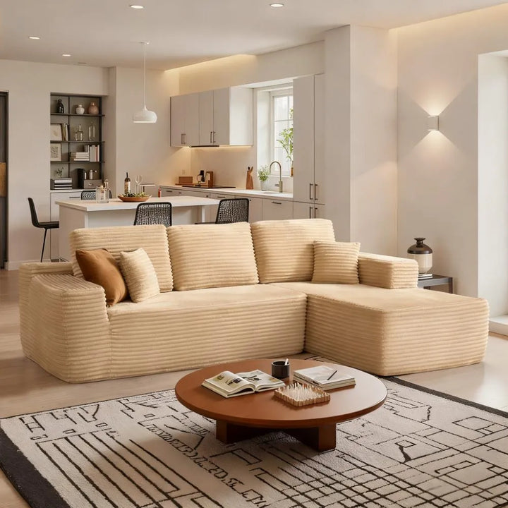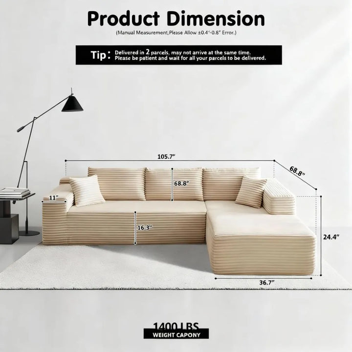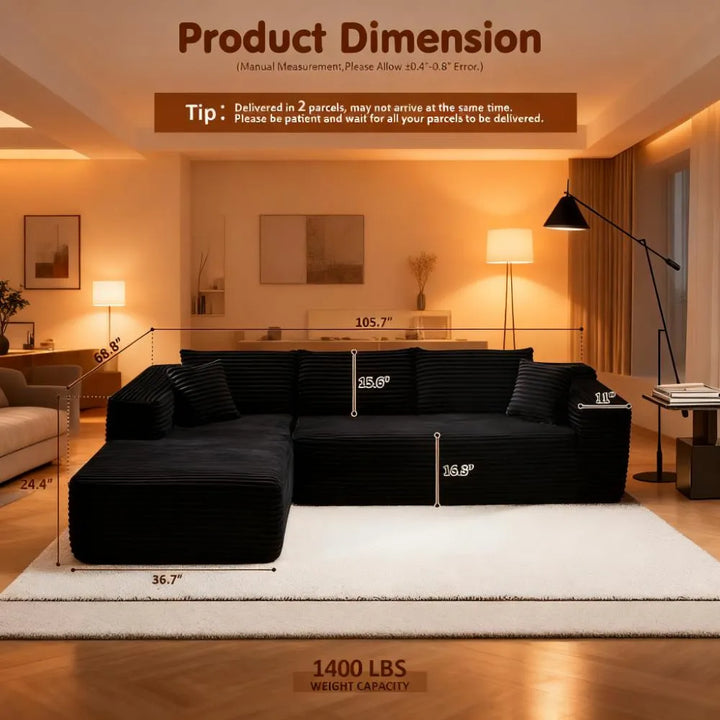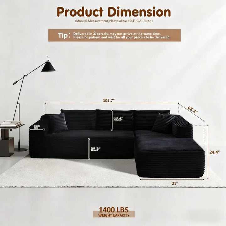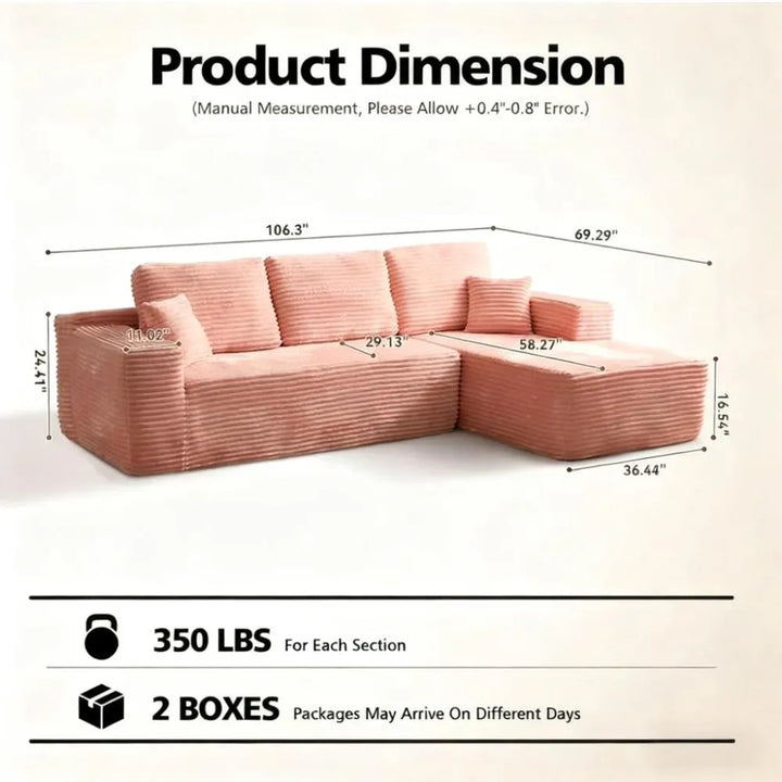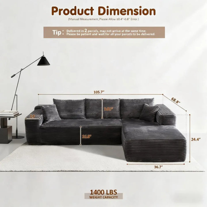 Extra-Large L-Shaped Configurable Sofa with Ottoman, Skin-Friendly Corduroy Material