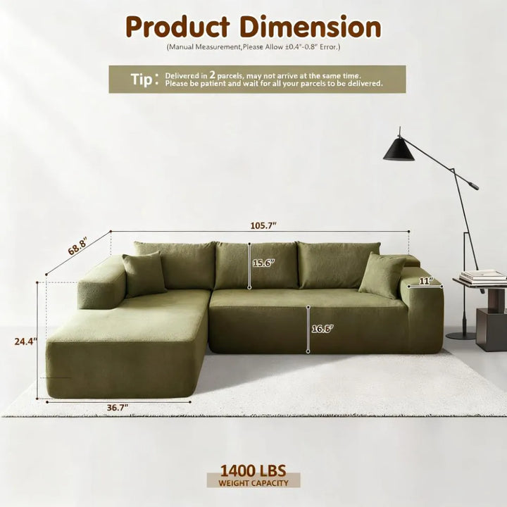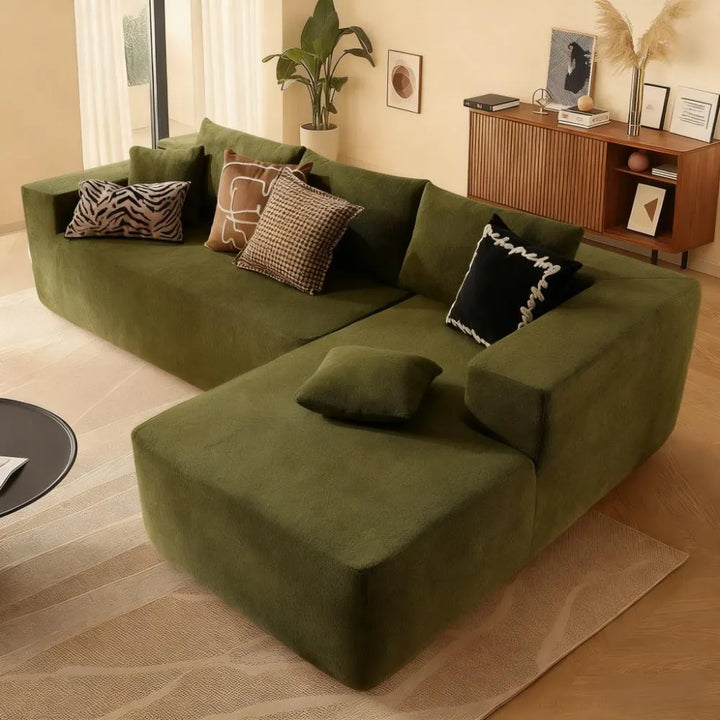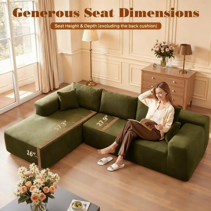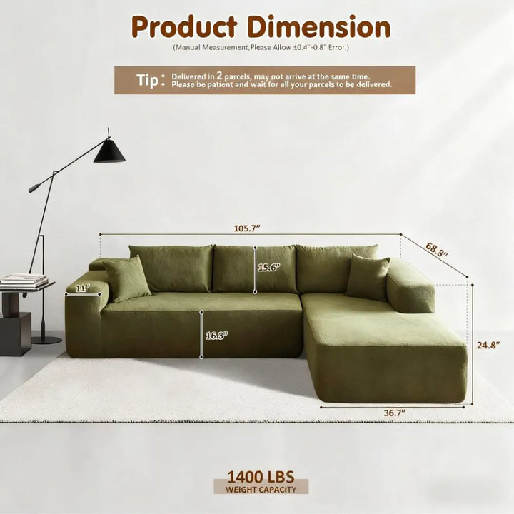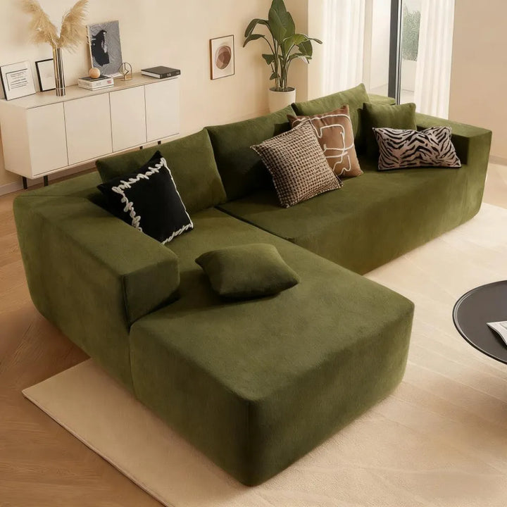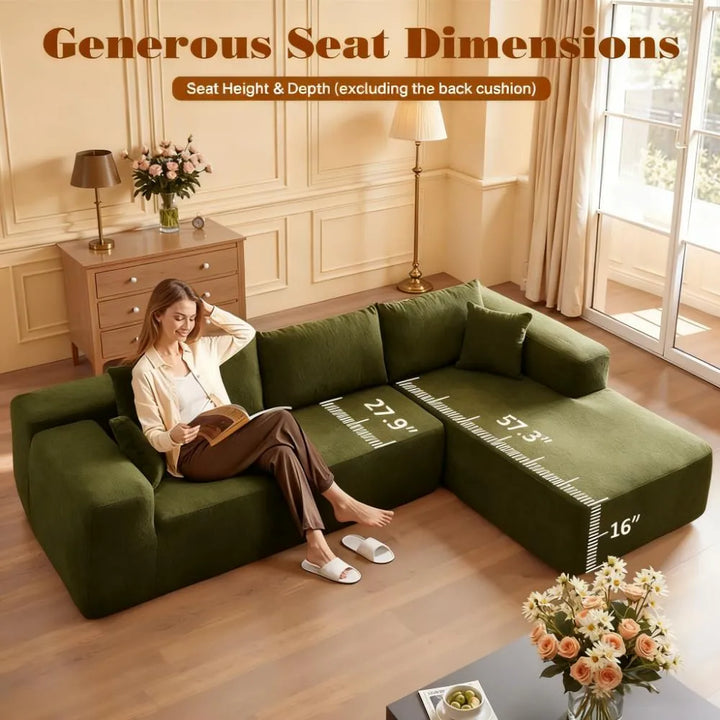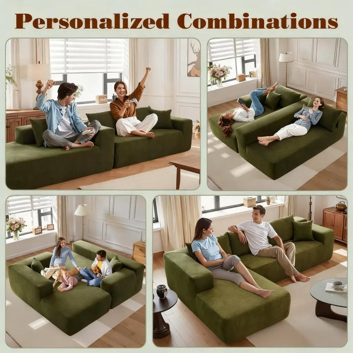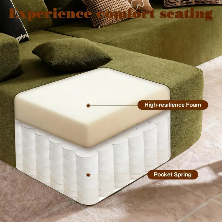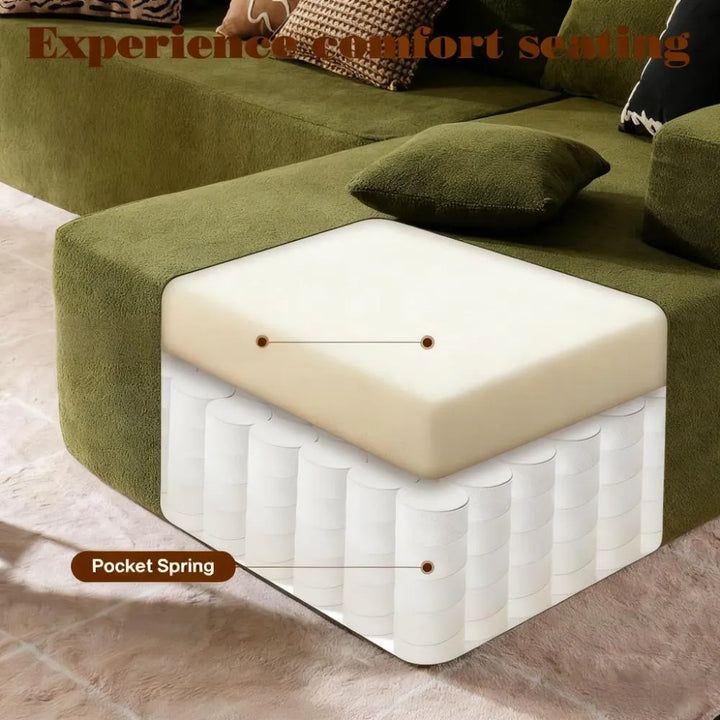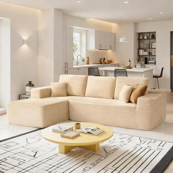 Extra-Large L-Shaped Configurable Sofa with Ottoman, Skin-Friendly Corduroy Material