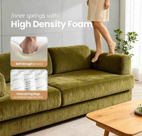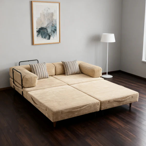 This 4-in-1 modular corduroy sofa bed combines elegance, practicality, and durability — ideal for anyone seeking flexible furniture that adapts to every occasion while providing premium comfort and timeless style.
