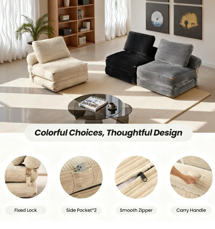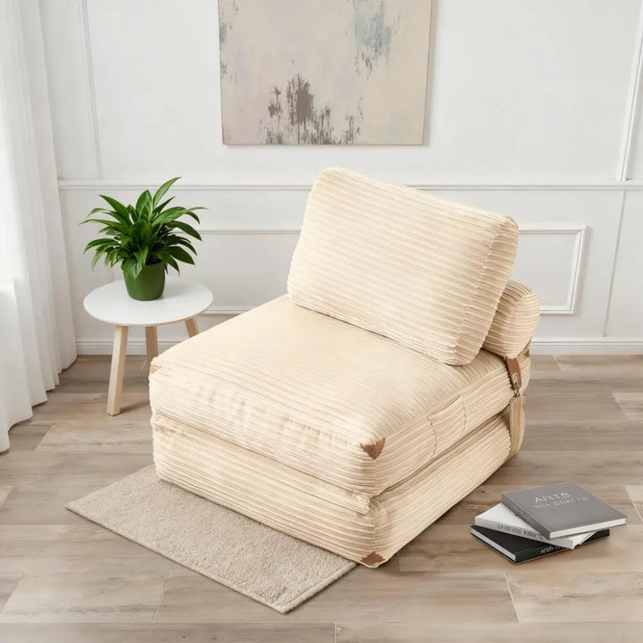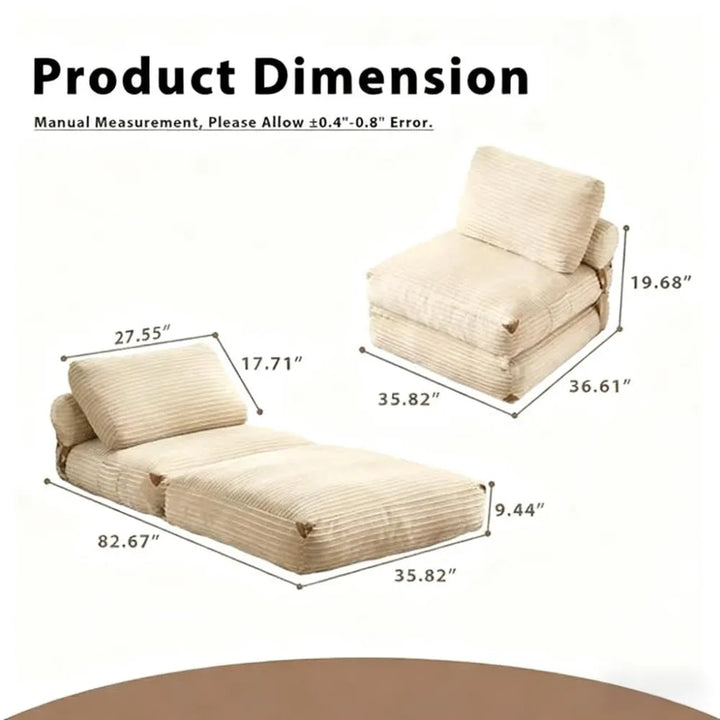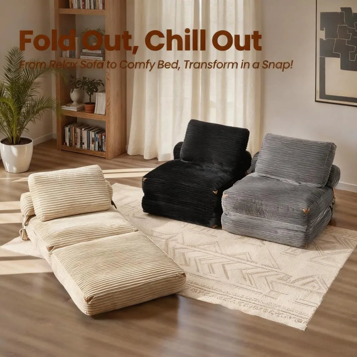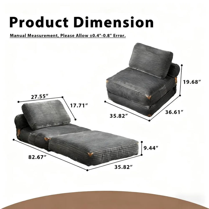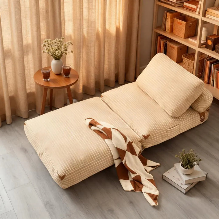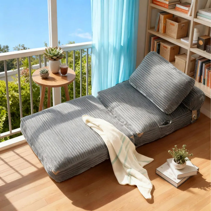 Beanbag Foldable Sofa Bed - Convertible Lounger with Pillow and Back Support