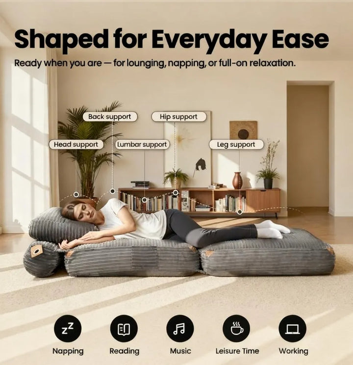 Filled with high-density memory foam and wrapped in ultra-soft fabric, it provides fluffy and body-hugging support, ideal for relaxing, reading, entertainment, or sleeping.
