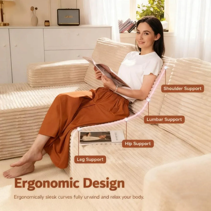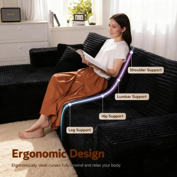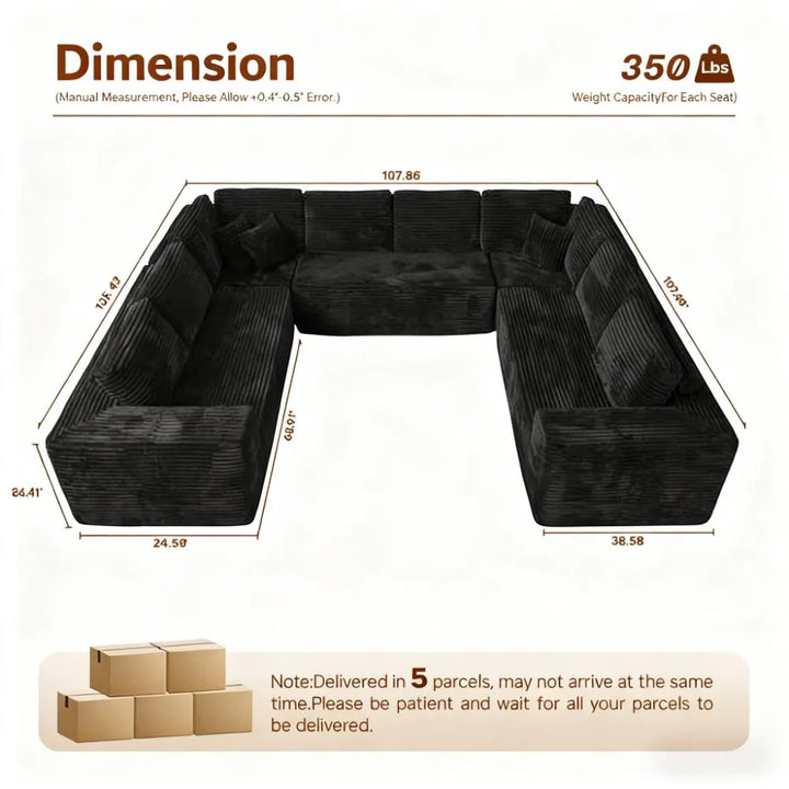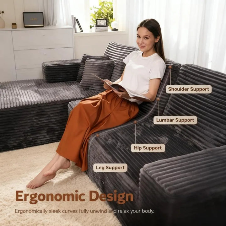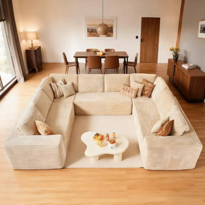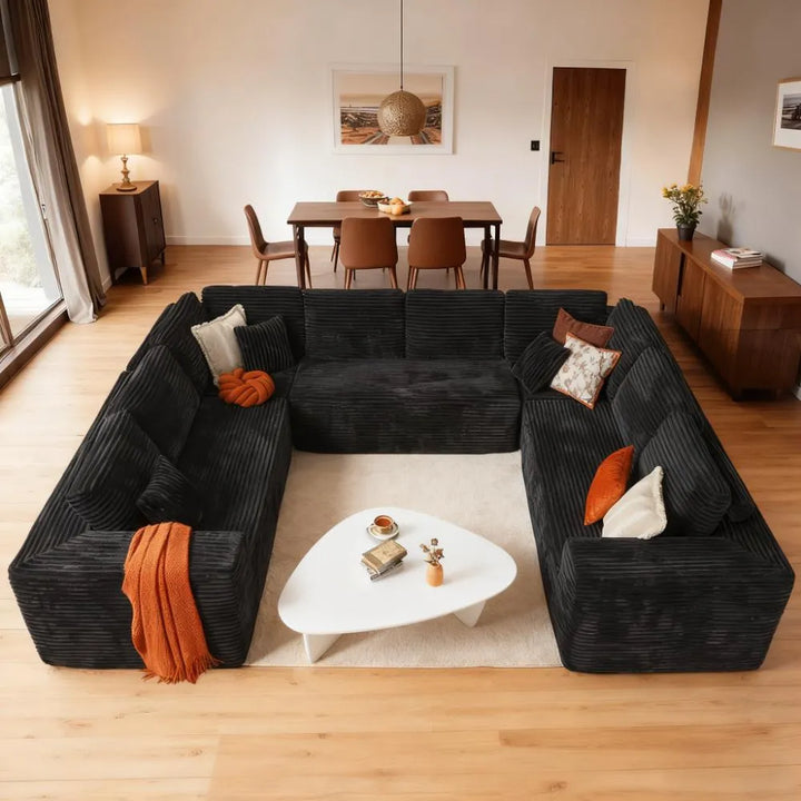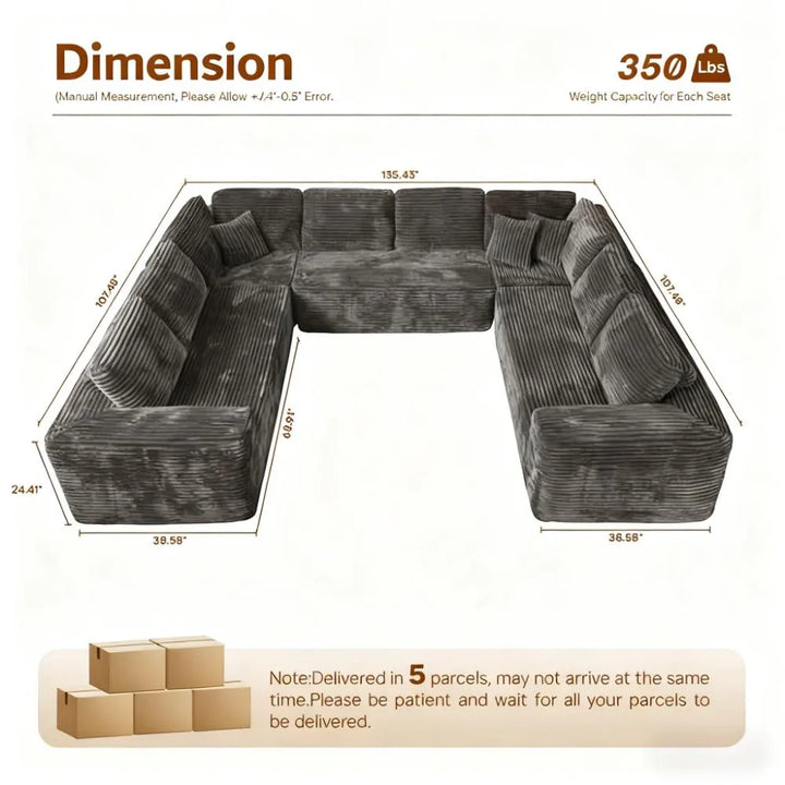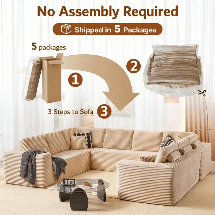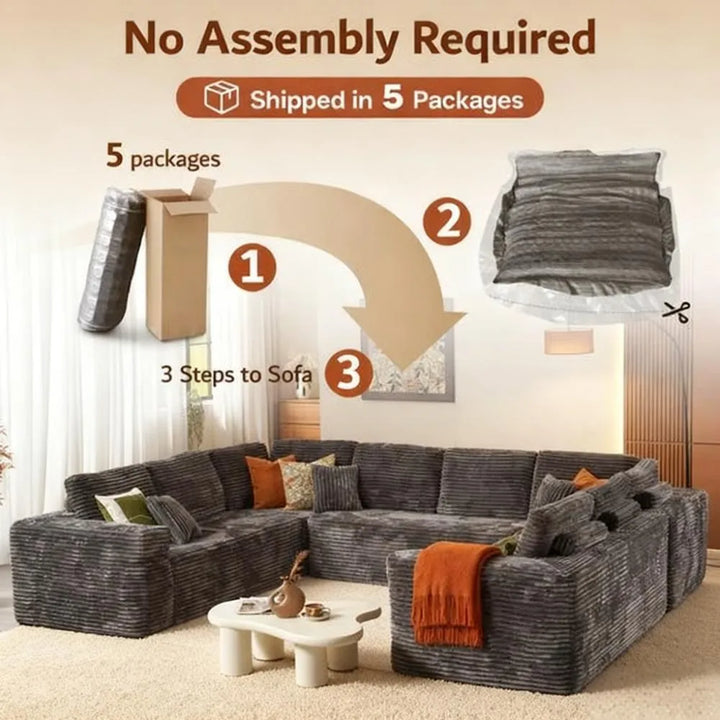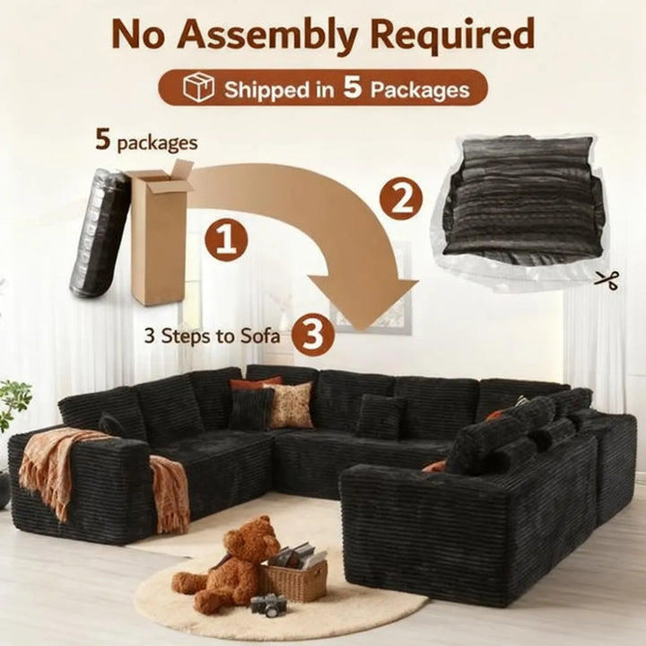 Fluffy Memory Foam Sofa Set - U-Layout Corduroy Cover, Unbox and Enjoy