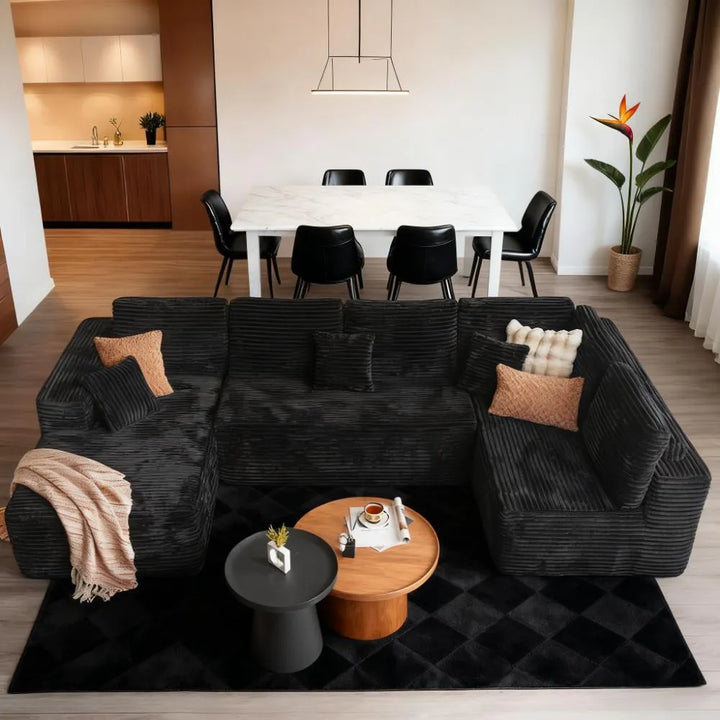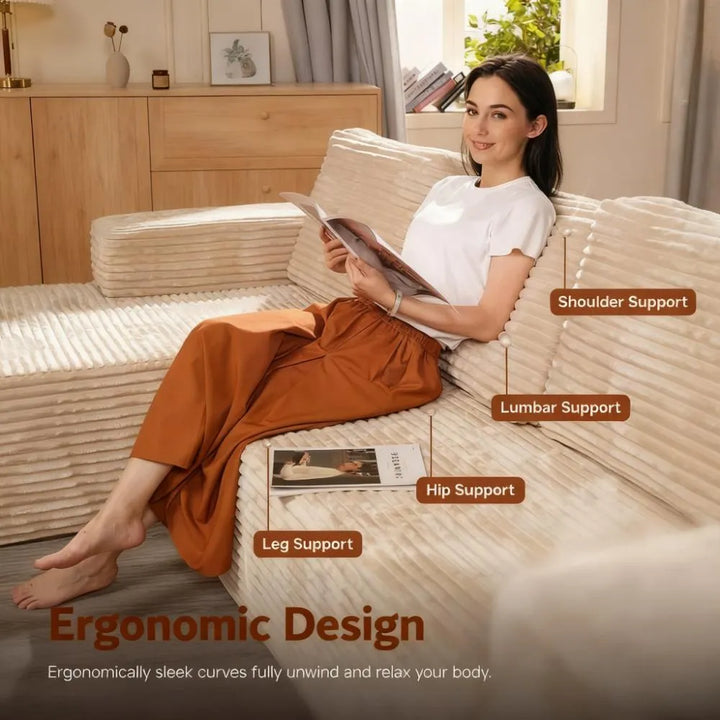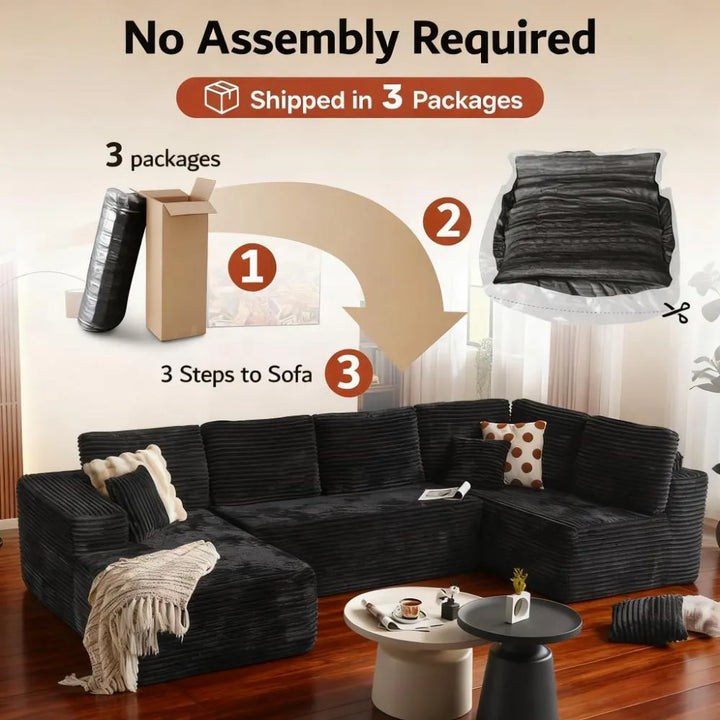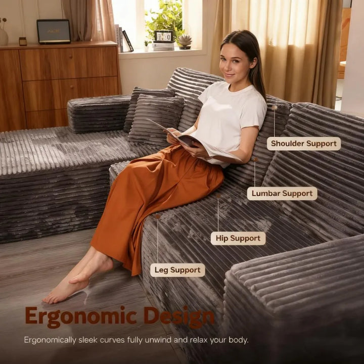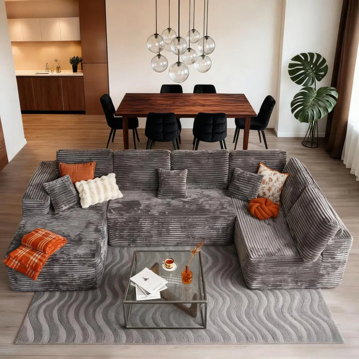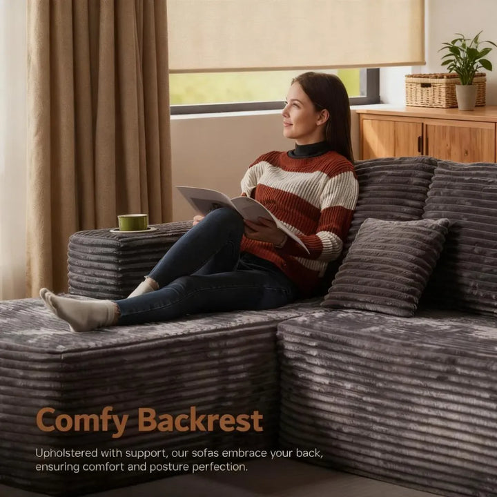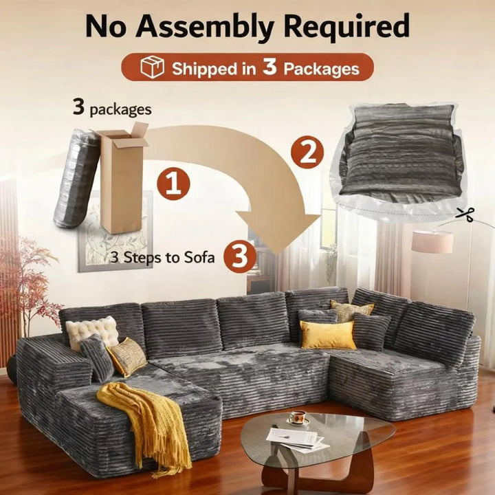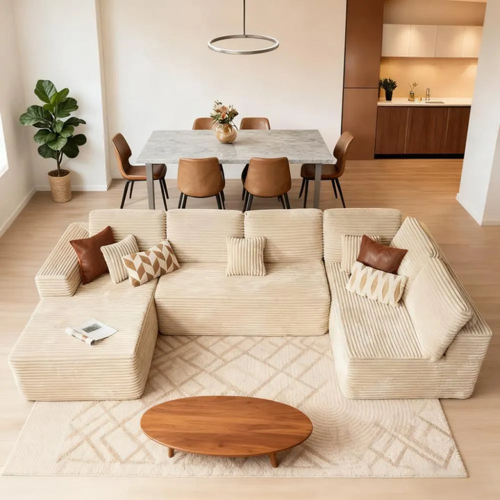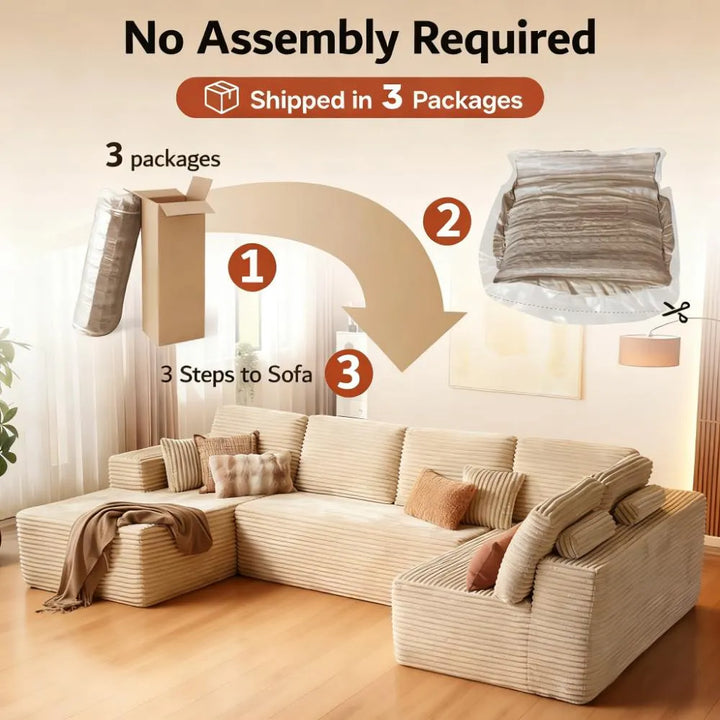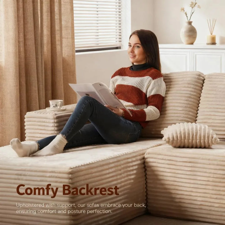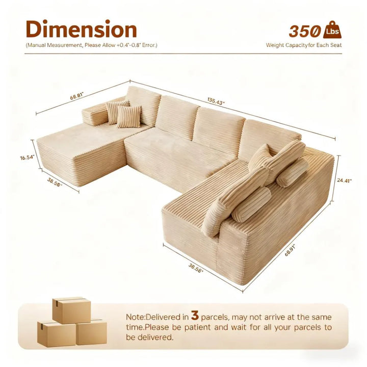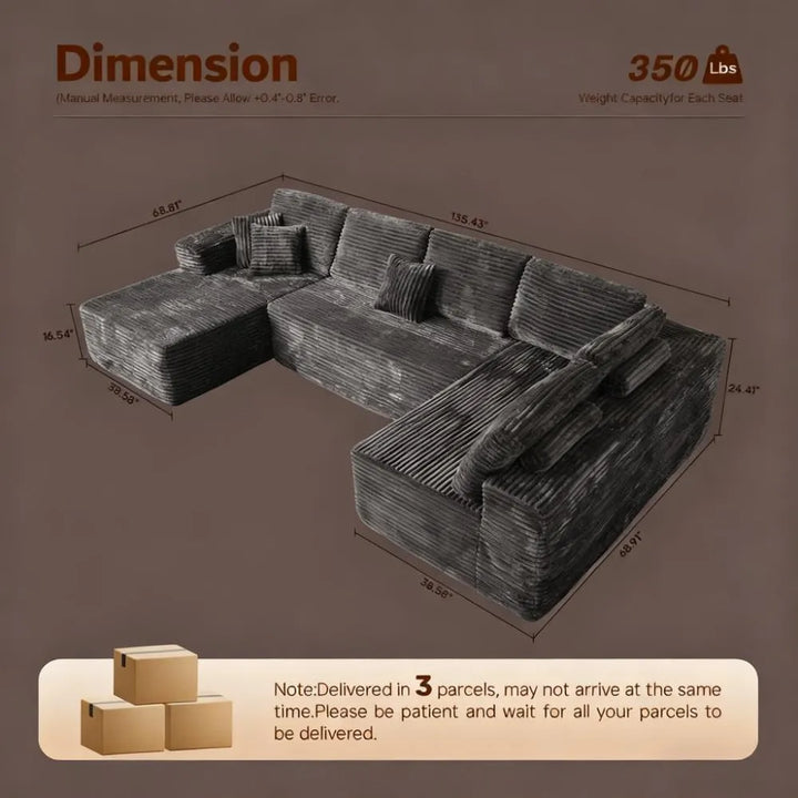 Modular Cloud Sectional Sofa, Soft Corduroy with Memory Foam, U-Shaped Chaise