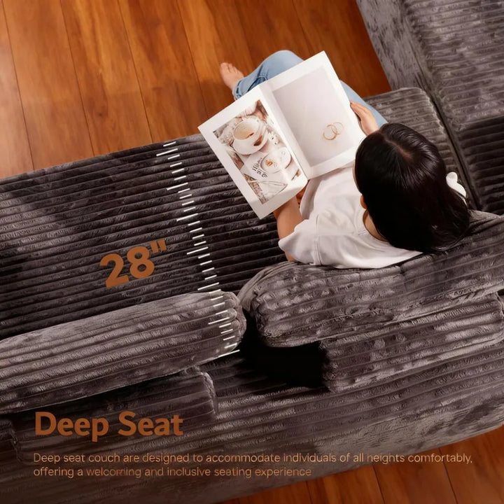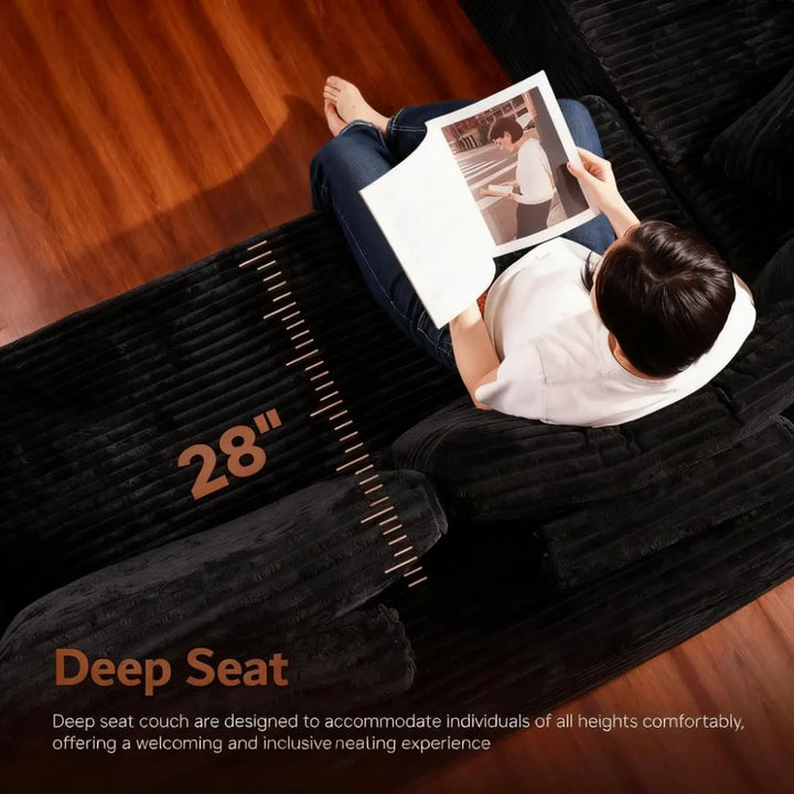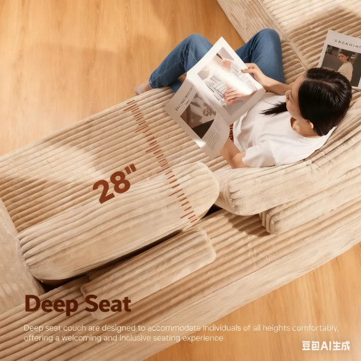 ● Elegant Modern Design: Enhance your living room with this soft velvet corduroy sectional sofa. Its refined, minimalist design with clean lines and striped accents adds a high-end touch to any home decor.