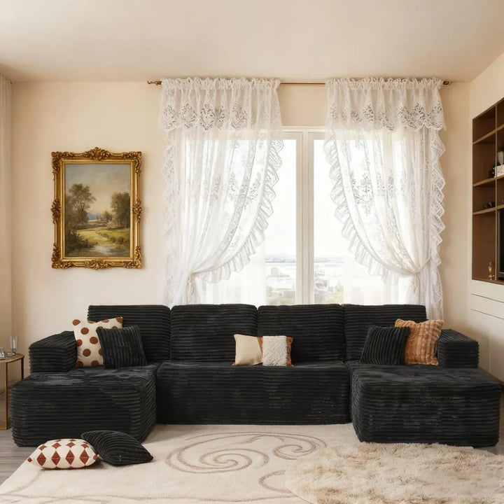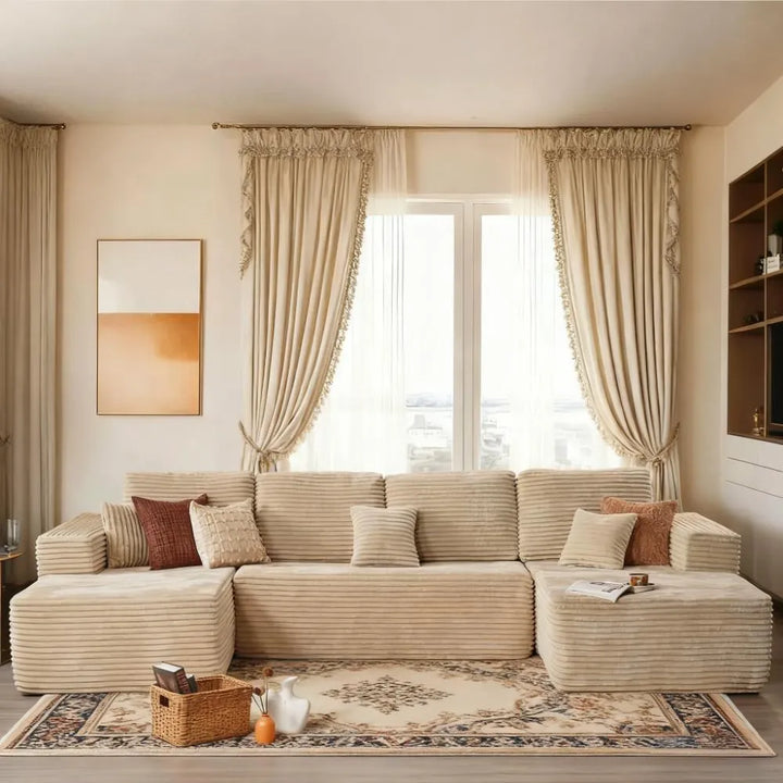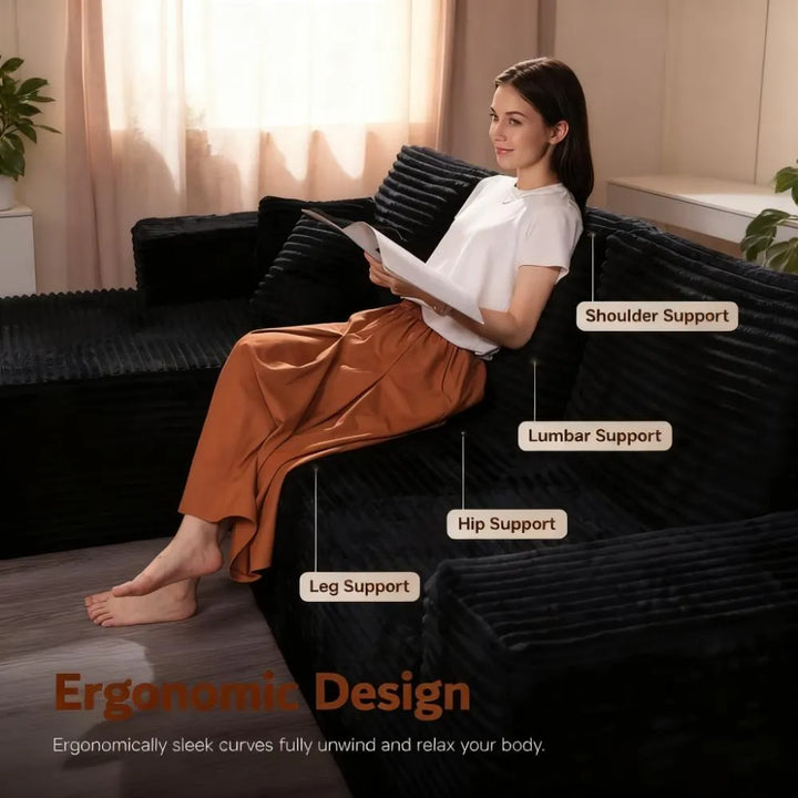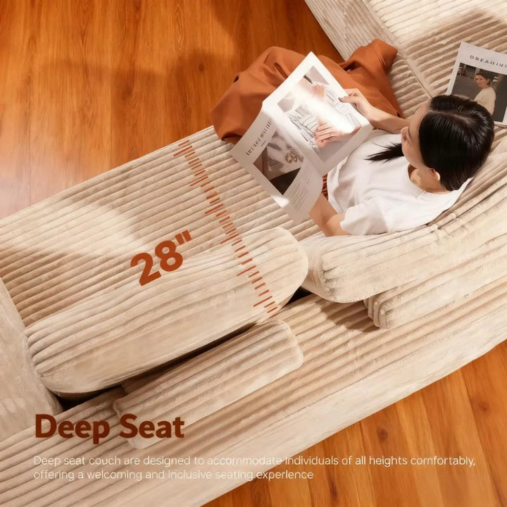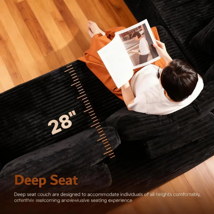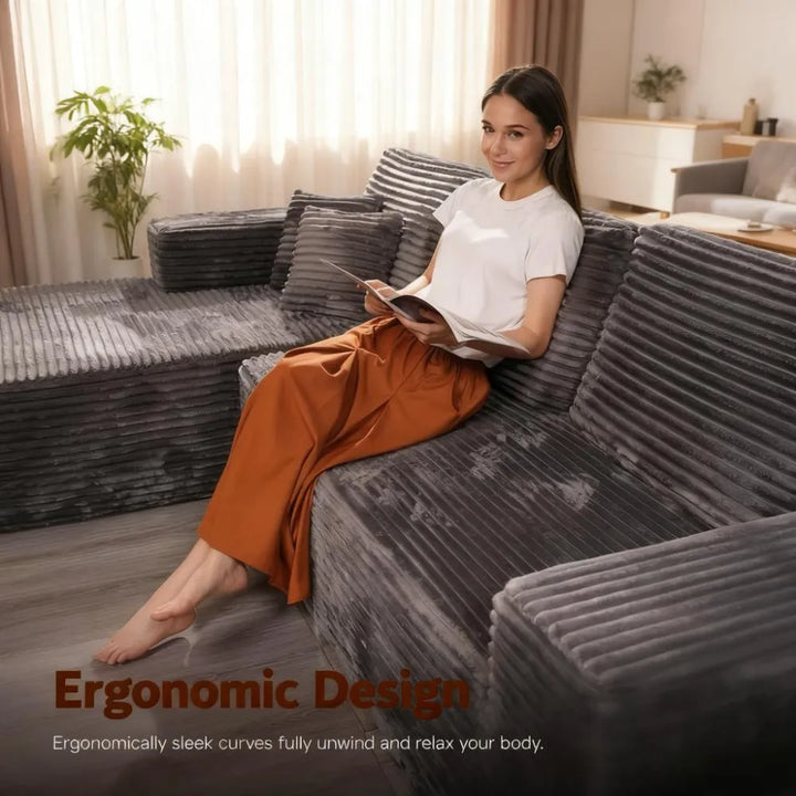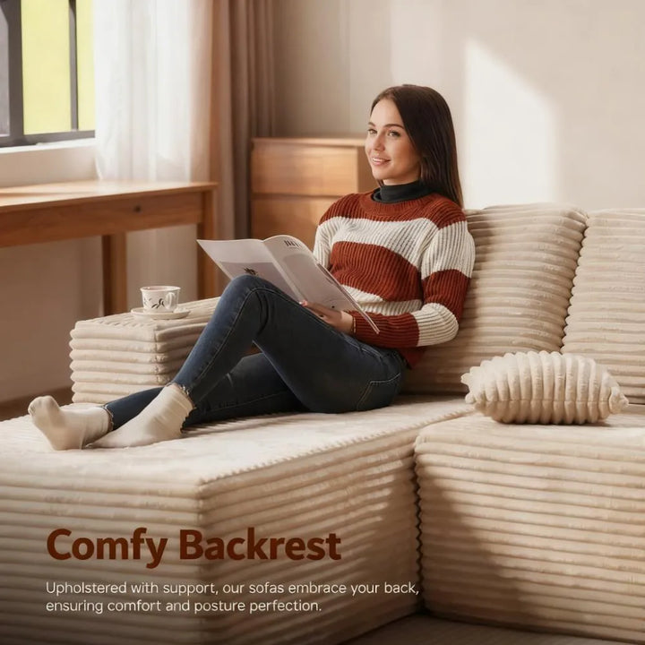 ● Contemporary Modern Design: Enhance your living space with this soft velvet corduroy sectional sofa. Its refined, minimalist design with clean lines and striped accents adds a high-end touch to any home decor.