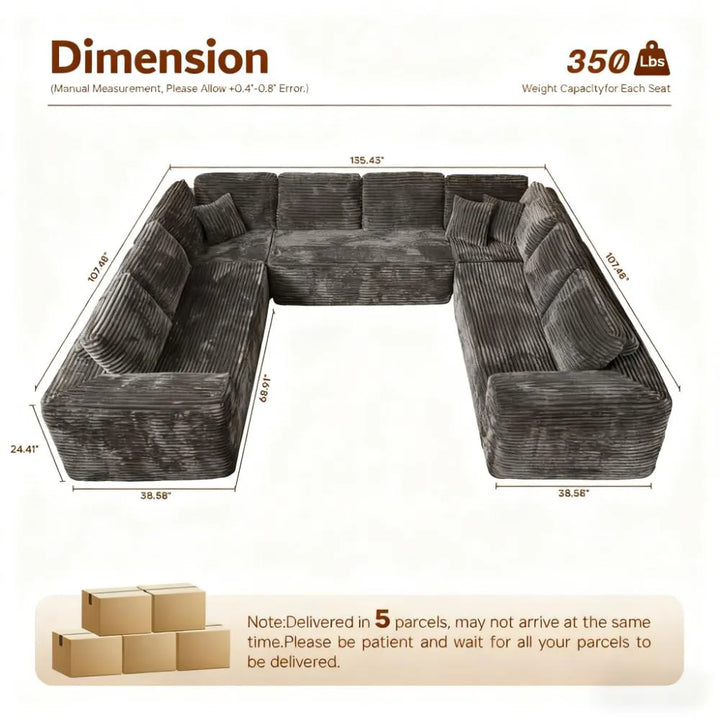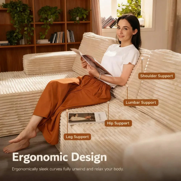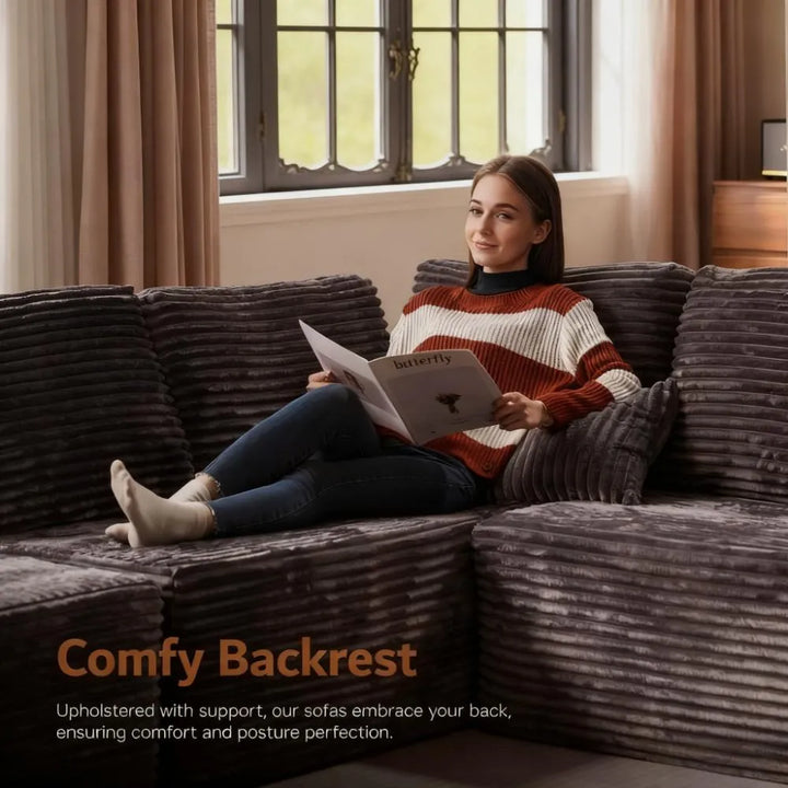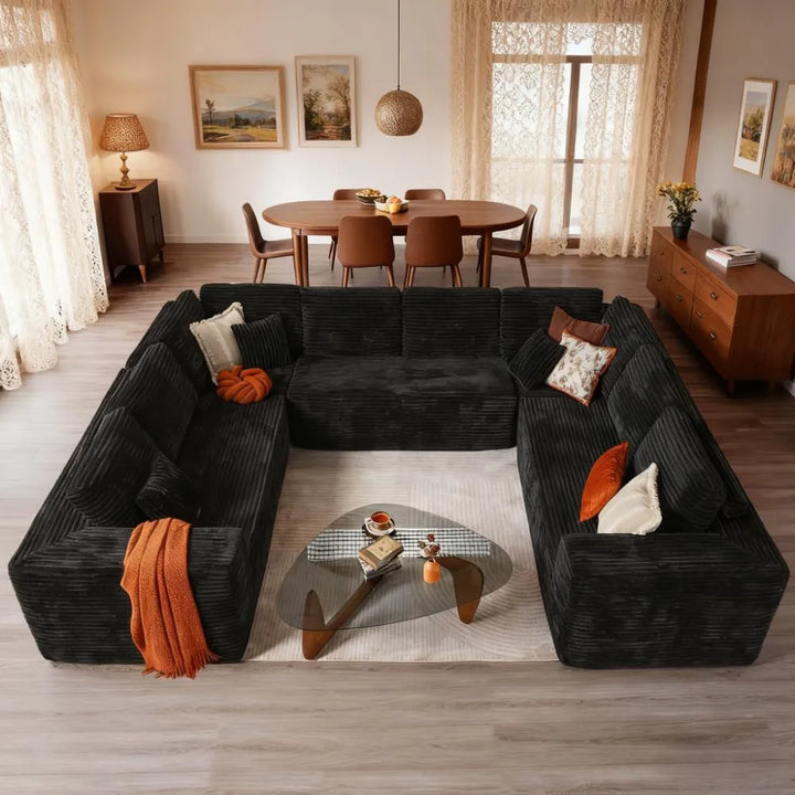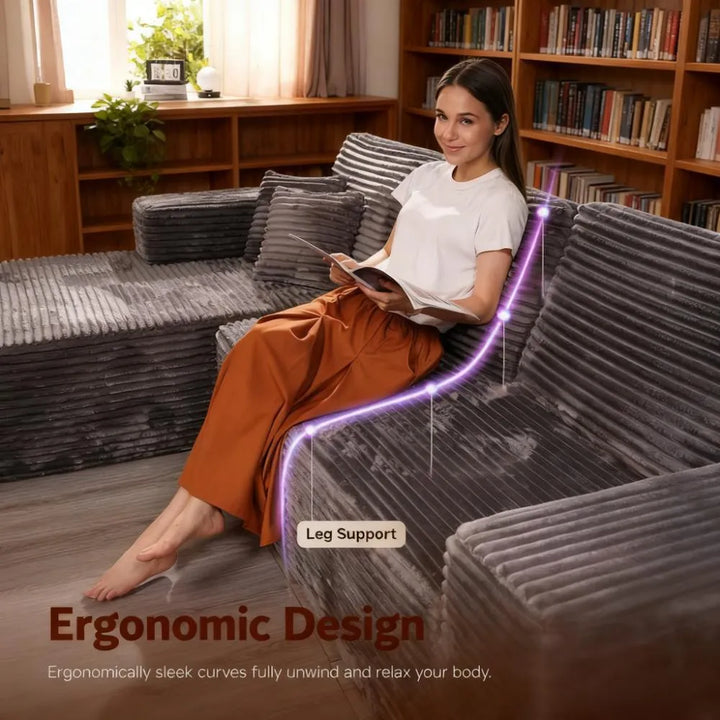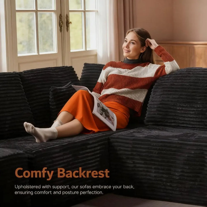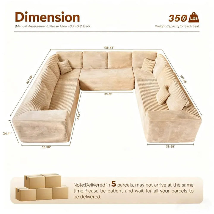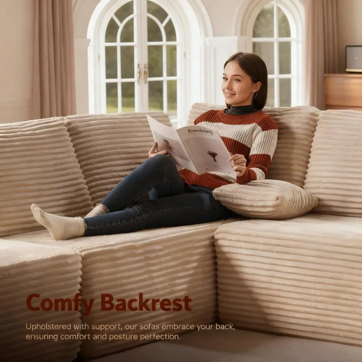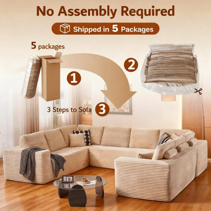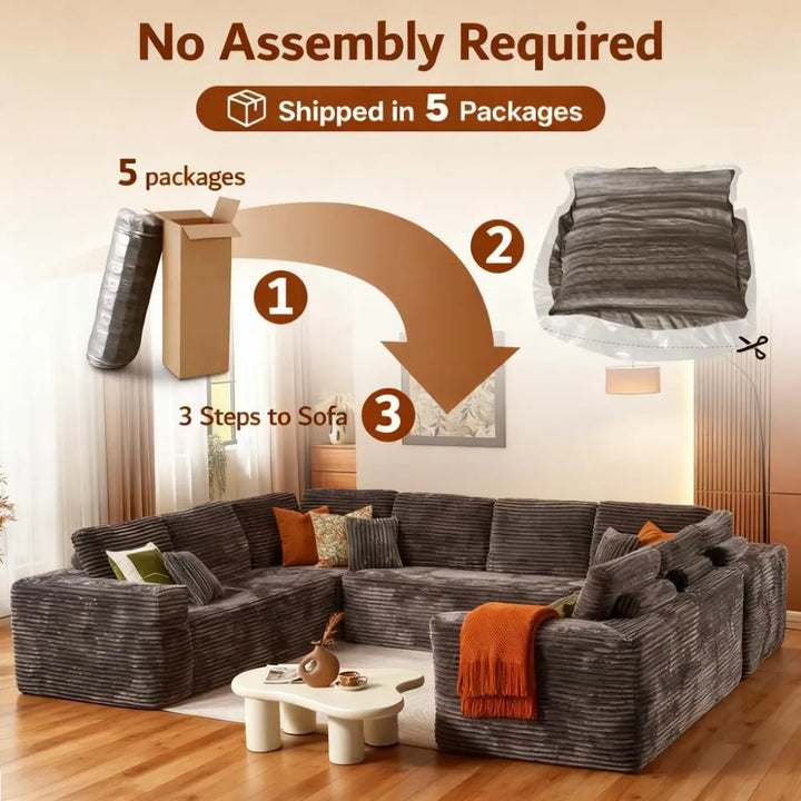 Modular Corduroy Sofa with Memory Foam & U-Chaise, No Assembly