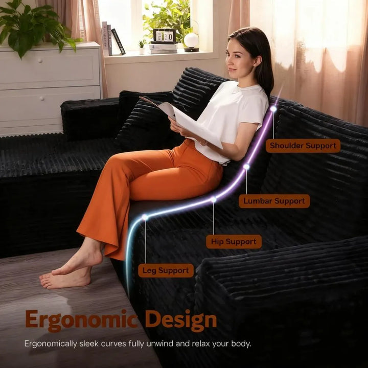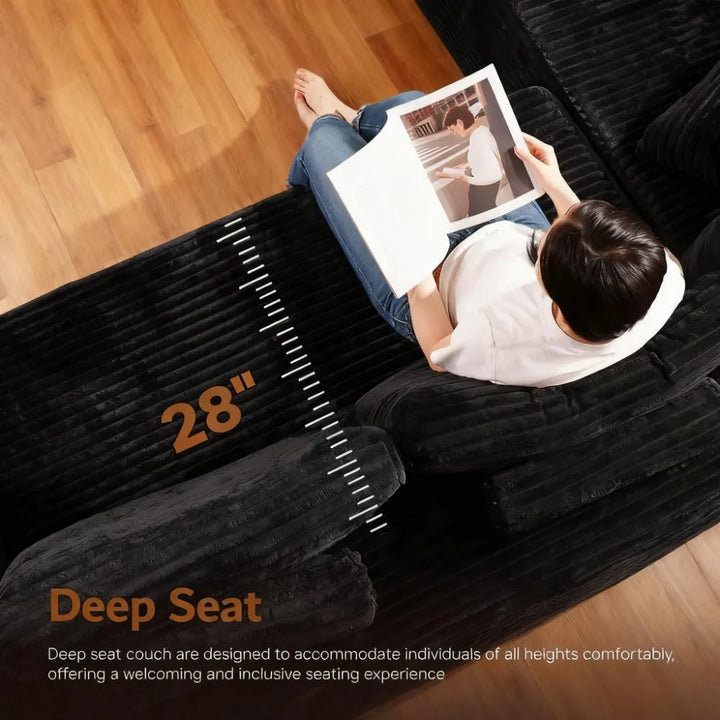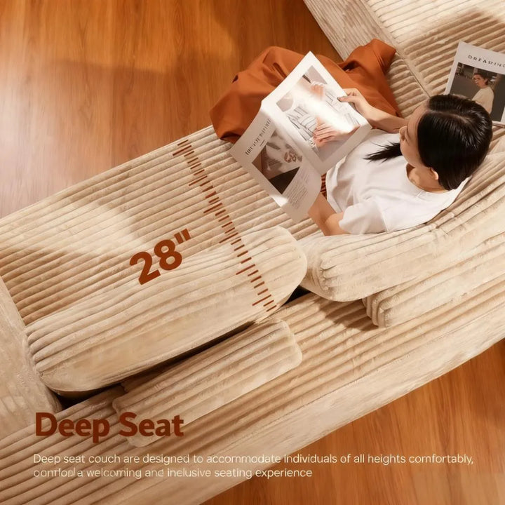 ● Refined Modern Design: Elevate your living room with a soft corduroy sectional sofa. Its sleek, timeless aesthetic featuring clean lines and striped details adds an elegant touch to any interior.
