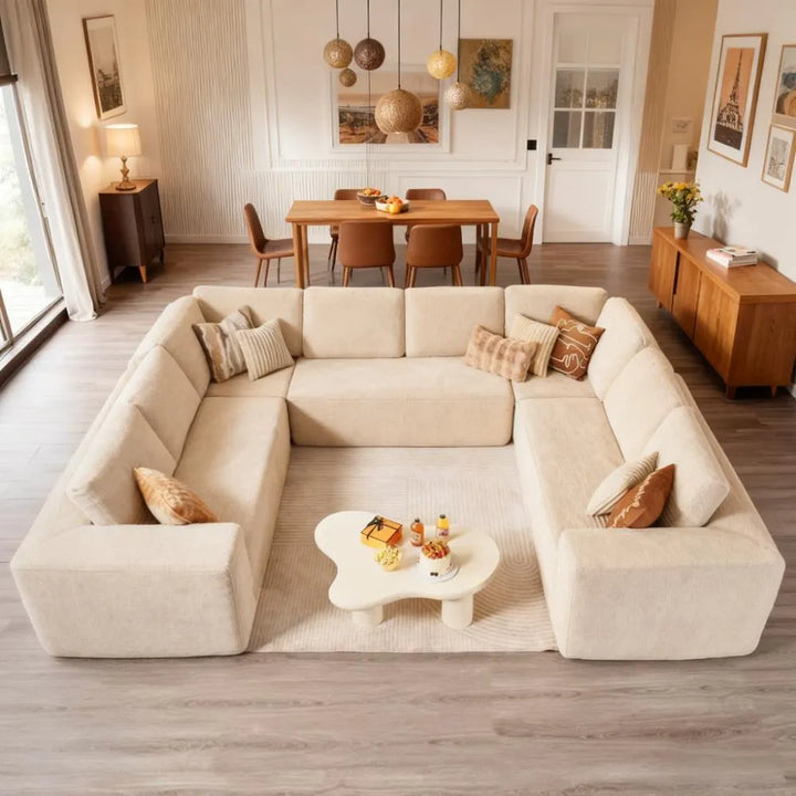● Modular Sectional Sofa: Customize your ideal seating layout with our versatile pieces. Configure them into a U-shape, L-shape, or sofa bed to fit your space and style, effortlessly adapting to evolving needs.