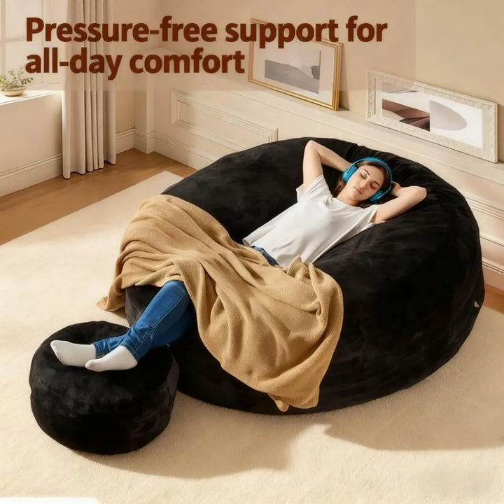 The pre-filled bean bag comes with a luxurious flannel cover that is ultra-soft, skin-friendly, and smooth to the touch. Perfect for family movie nights, game sessions, date nights, or simply relaxing with a good book—it fits anywhere at home.