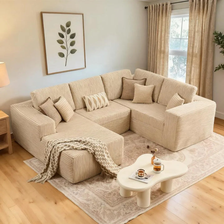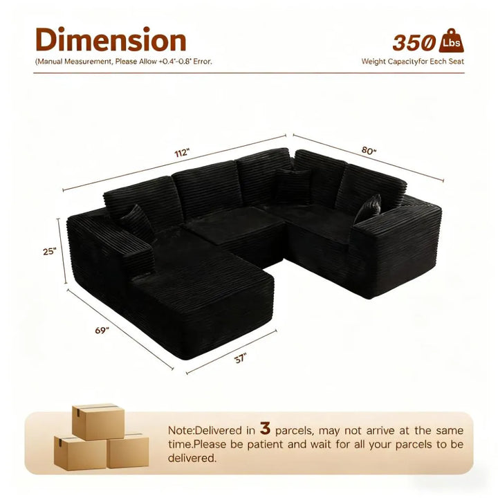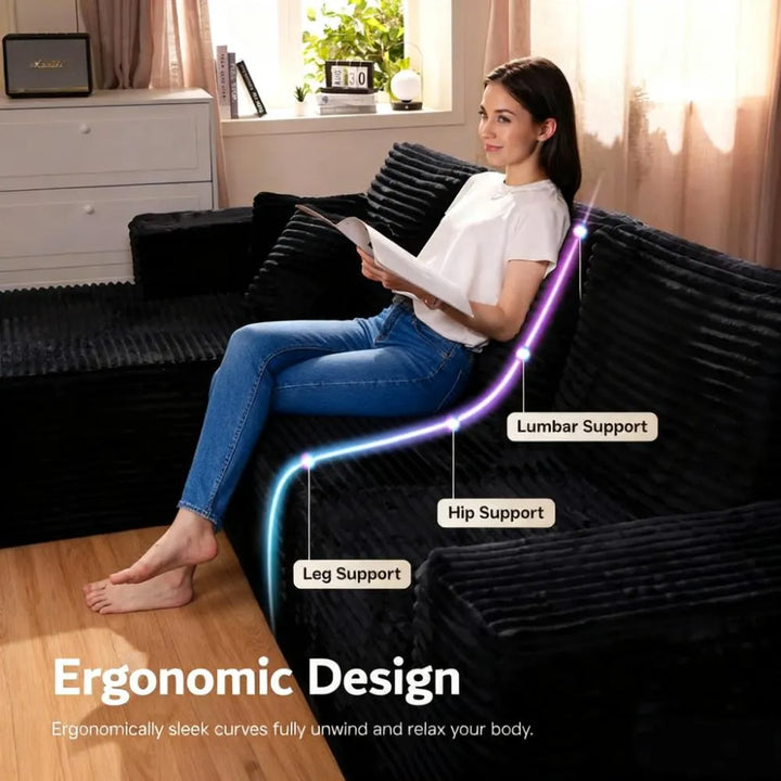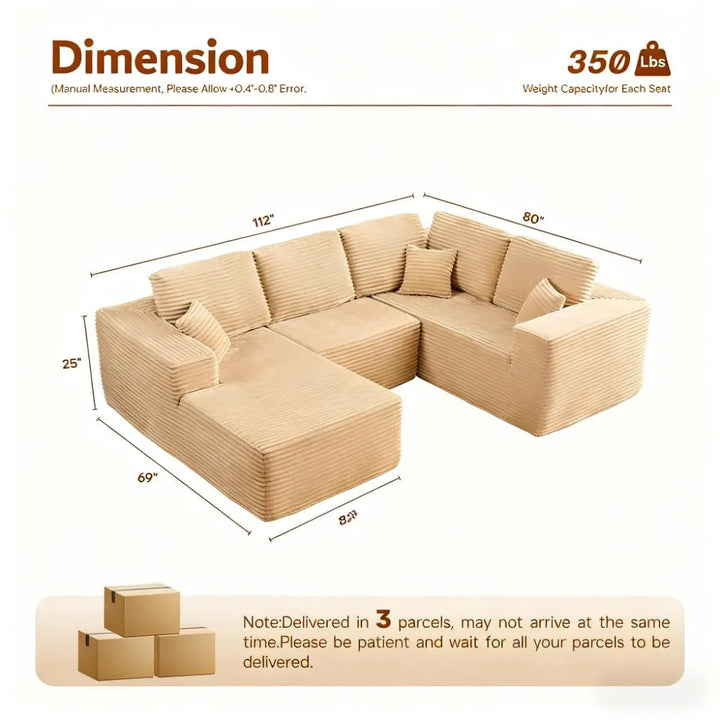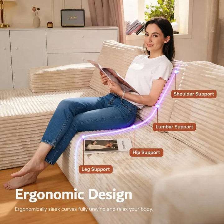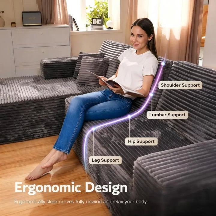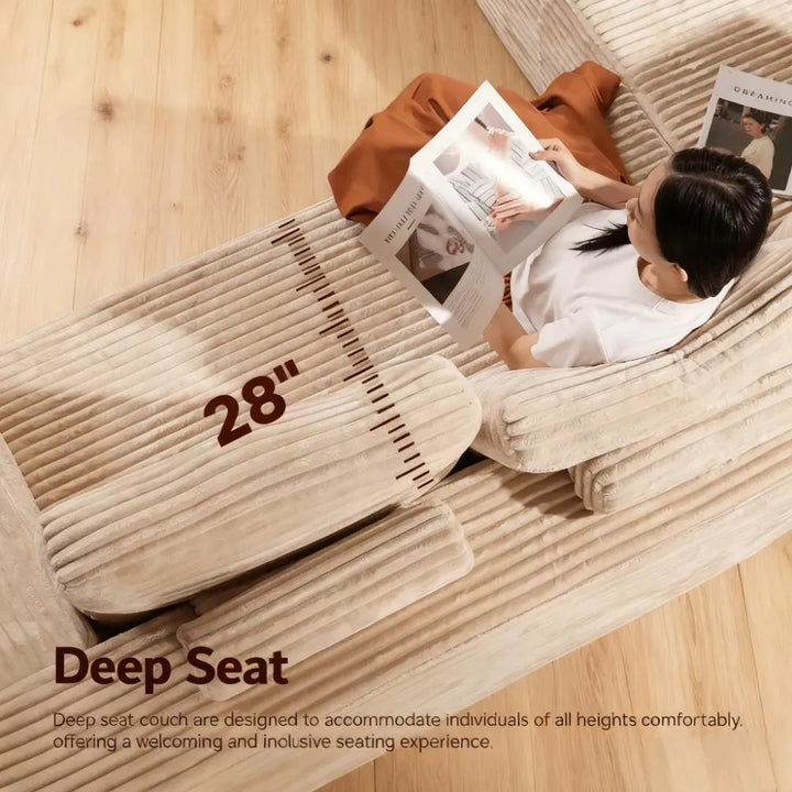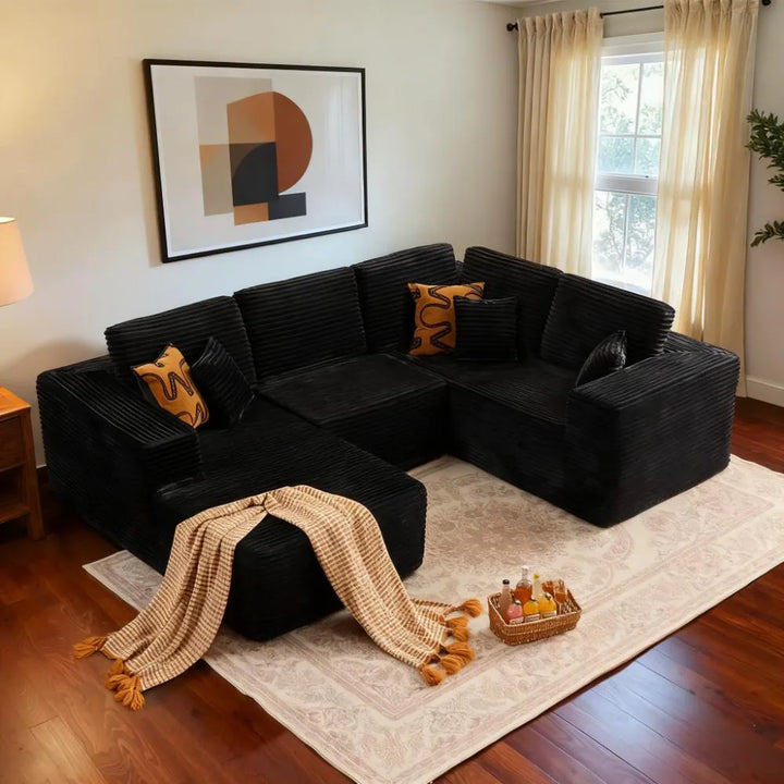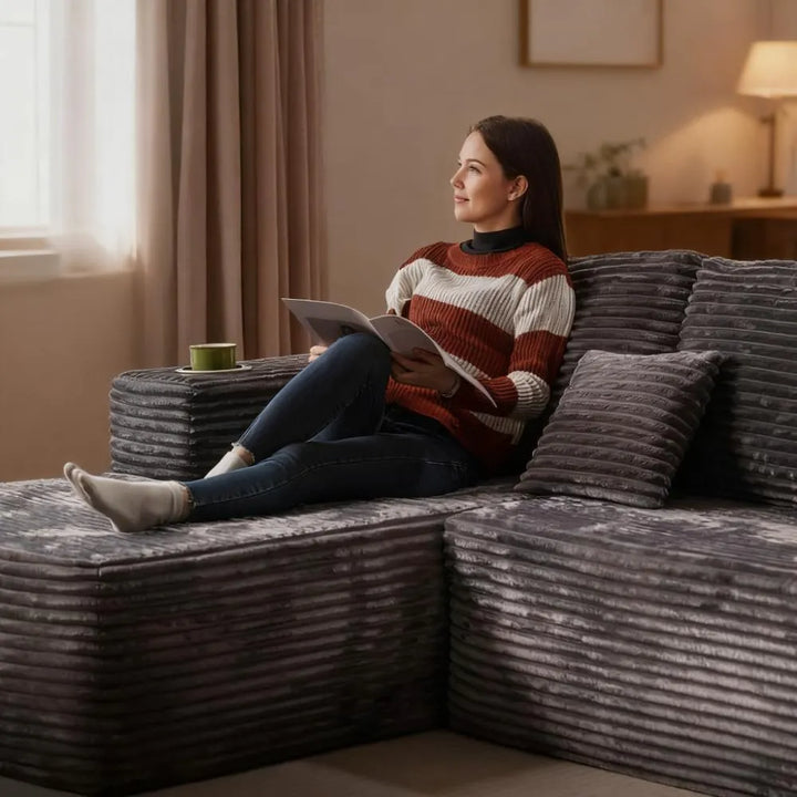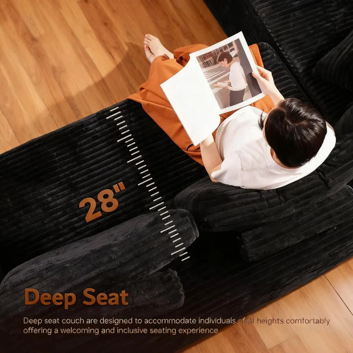 ● Contemporary Modern Design: Enhance your living space with this soft velvet corduroy sectional sofa. Its refined, minimalist design with clean lines and striped accents adds a high-end touch to any home decor.