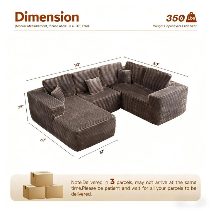 ● No Assembly Required: Easily assemble this cloud modular sectional sofa. Simply unbox all parts and lightly tap each segment to restore its bounce, bringing back its photogenic appeal. Full recovery may take about 72 hours. Enjoy the convenience of no assembly.